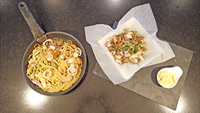 | Crevettes au Rhum et Linguine | |